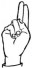 На ћирилици написано САНДРА ГРУЈЕСКОВИЋ састоји се из 17 слова [?]. Исписано ћириличном једноручном азбуком за глувонеме: